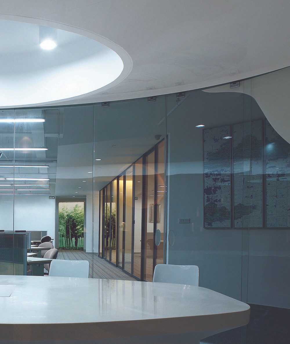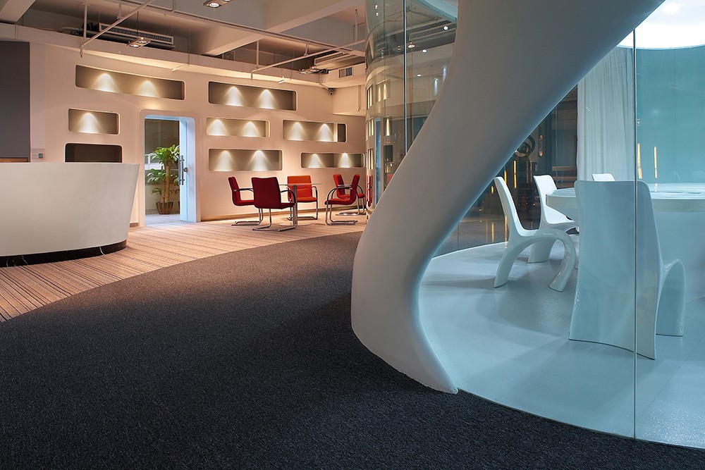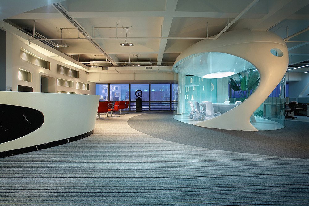 本案設(shè)計打破常規(guī),風(fēng)格定位成簡約、時尚、精致、國際化。辦公室布局恰到好處,全開放式天花,彌補(bǔ)層高不足的缺點(diǎn),為了在小空間能做出大氣的效果,設(shè)計師在入口處留出了一個大氣的中庭會議室,充滿末來感,從地毯提取的線條元素,既有現(xiàn)代時尚感,又符合空間區(qū)域劃分的特征。