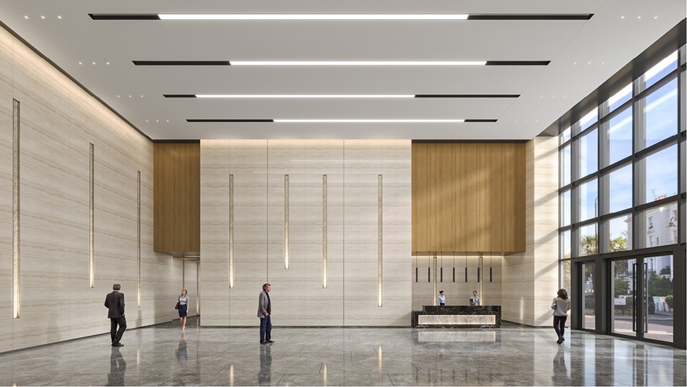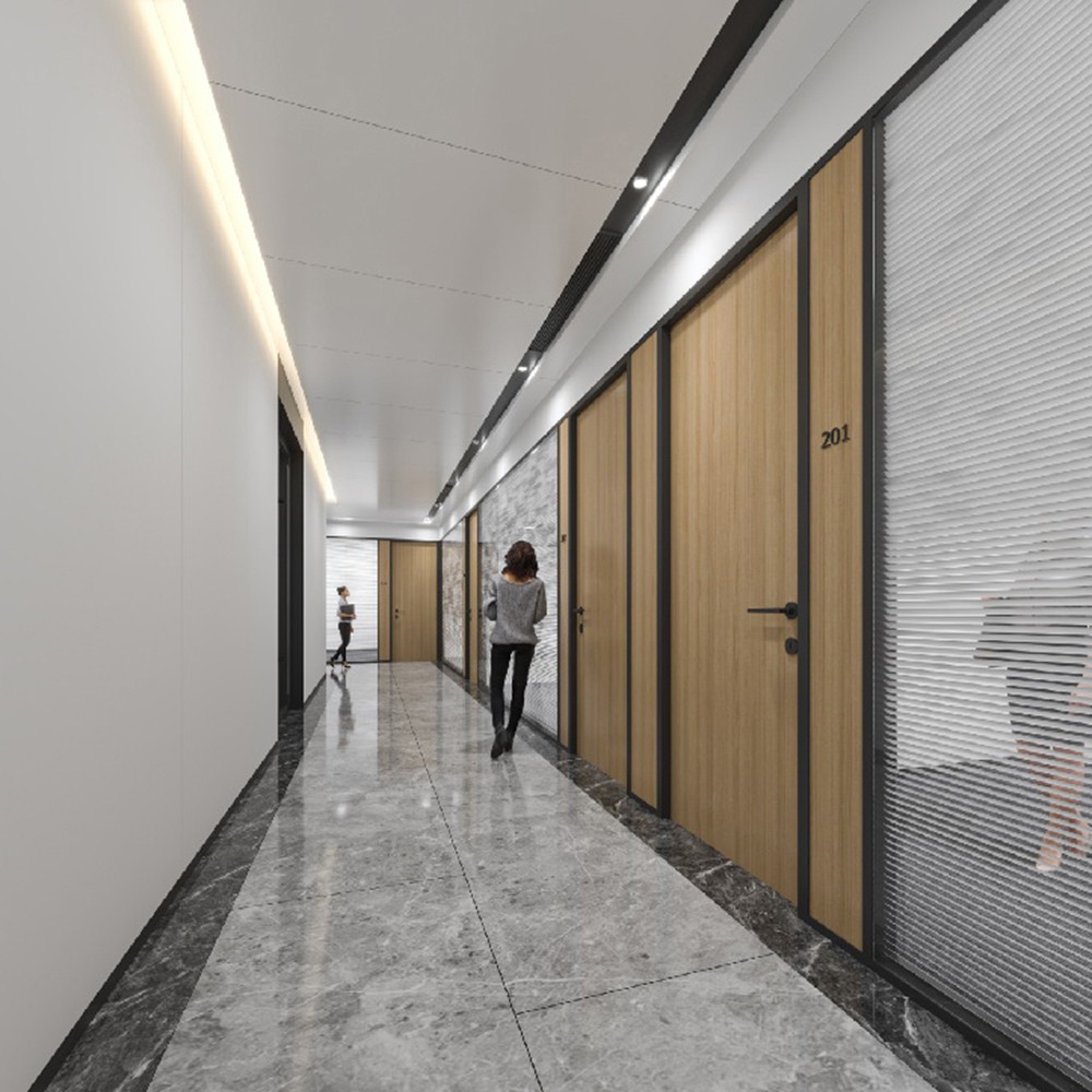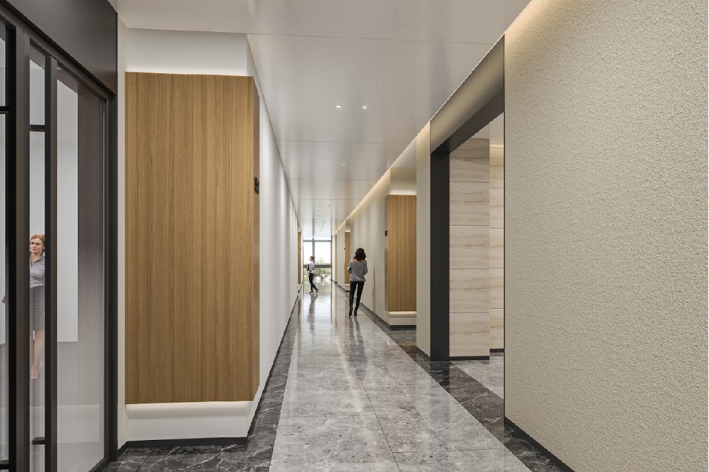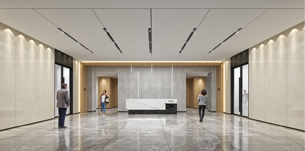 本案屬于產(chǎn)業(yè)園辦公樓裝修設(shè)計(jì)項(xiàng)目,設(shè)計(jì)風(fēng)格以現(xiàn)代時(shí)尚風(fēng)格為主,穩(wěn)定簡約的線條建筑外墻,讓產(chǎn)業(yè)園巍然地屹立在建筑群當(dāng)中.大堂整體以灰色為主,淺灰色的立體方格背景墻,深灰色的大理石地板磚,同時(shí)以藍(lán)色LOGO,木紋肌理裝飾,與綠色植物作為點(diǎn)綴,再通過天花燈飾作為陪襯,使整個(gè)空間躍動(dòng)起來,形成了有趣的視覺效果。高級灰大理石地面、陳列架與辦公室中間的休閑區(qū)混搭出了北歐韻味,條型燈造型元素帶來了滿滿科技感,整個(gè)空間既簡潔大氣又時(shí)尚有格調(diào)。