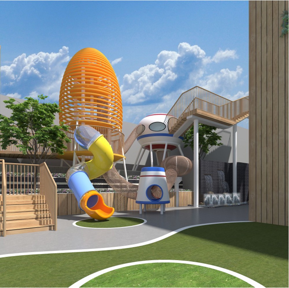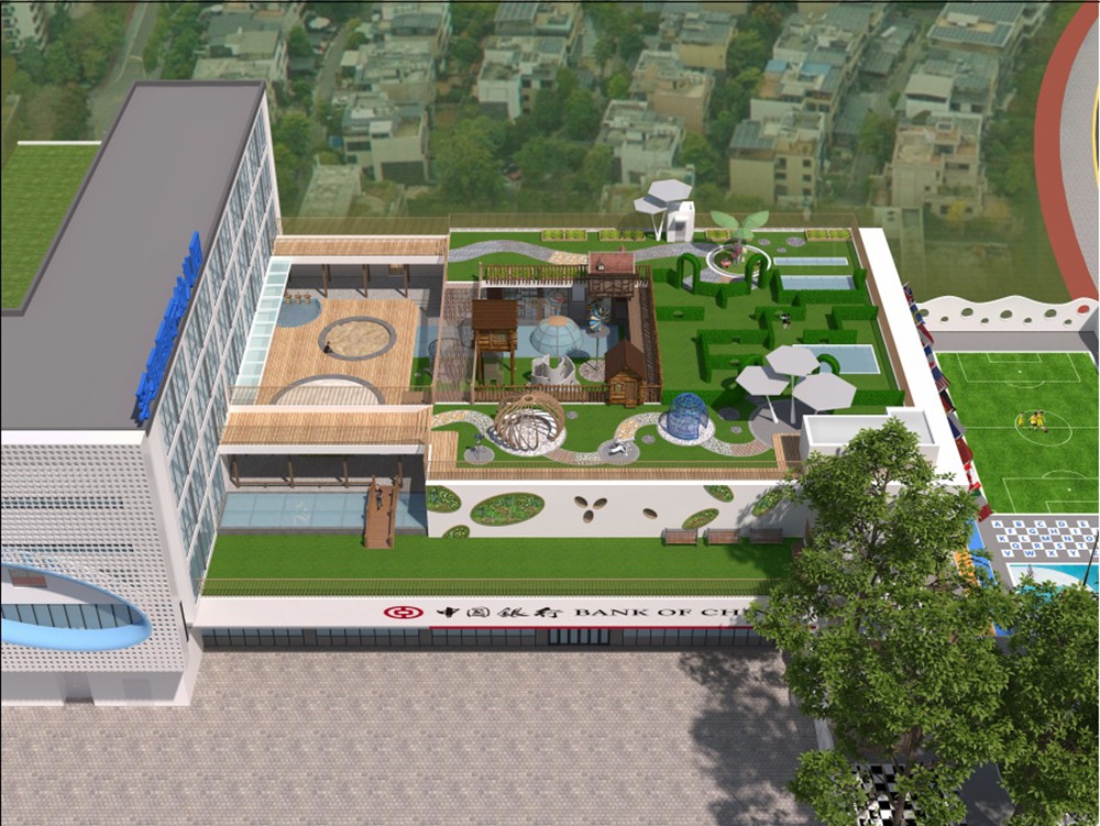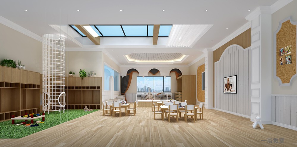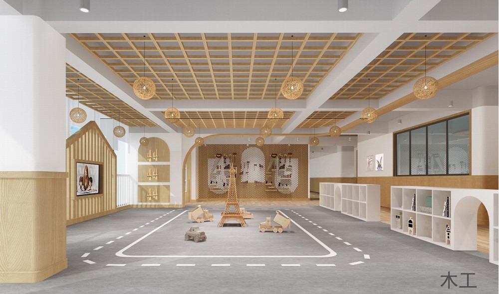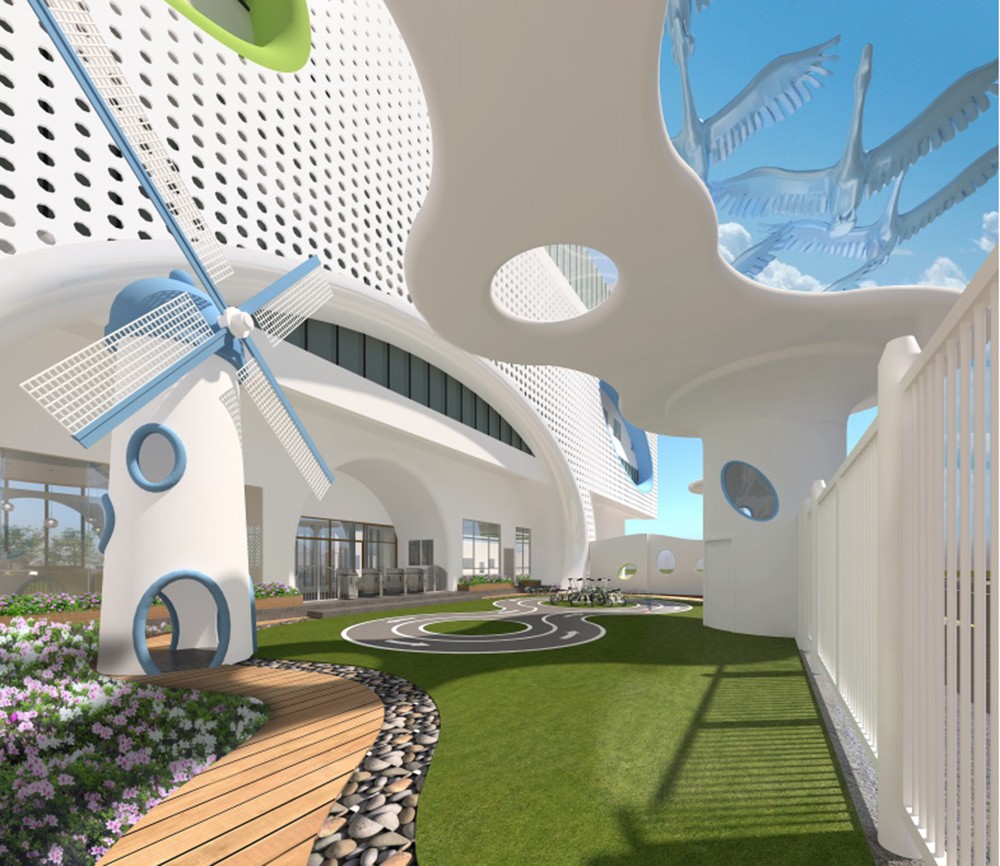 本案設計師運用豐富的設計語言與理念,從多個維度對幼兒園進行全方位的立體設計,溫馨:幼兒園是孩子的第二個家,園舍柔和的色彩、適齡的布置都會減少幼兒入園焦慮,給幼兒以安全、溫馨的滿足感。藝術(shù):富有藝術(shù)的環(huán)境創(chuàng)設,可以培養(yǎng)幼兒欣賞美、感受美、和創(chuàng)造美的能力,并能陶冶幼兒的情操。自主:幼兒園是孩子的天地,是孩子的樂園,是孩子自己的家,幼兒園的環(huán)境創(chuàng)設應體現(xiàn)孩子的自主性。生態(tài):根據(jù)幼兒好奇、好動、好模仿的特點,創(chuàng)造良好的生態(tài)環(huán)境,發(fā)揮境教的功能,有利于幼兒身心健康和諧發(fā)展。建立戲水池、仿沙灘、種植園、草坡、風車、水族館、科學館、動物等,營造鳥語花香、綠色盎然的天然景觀,讓孩子在觀察中發(fā)現(xiàn),在活動中感知,在創(chuàng)造中想象,在動手參與飼養(yǎng)、種植等勞動中懂得保護環(huán)境,愛護大自。